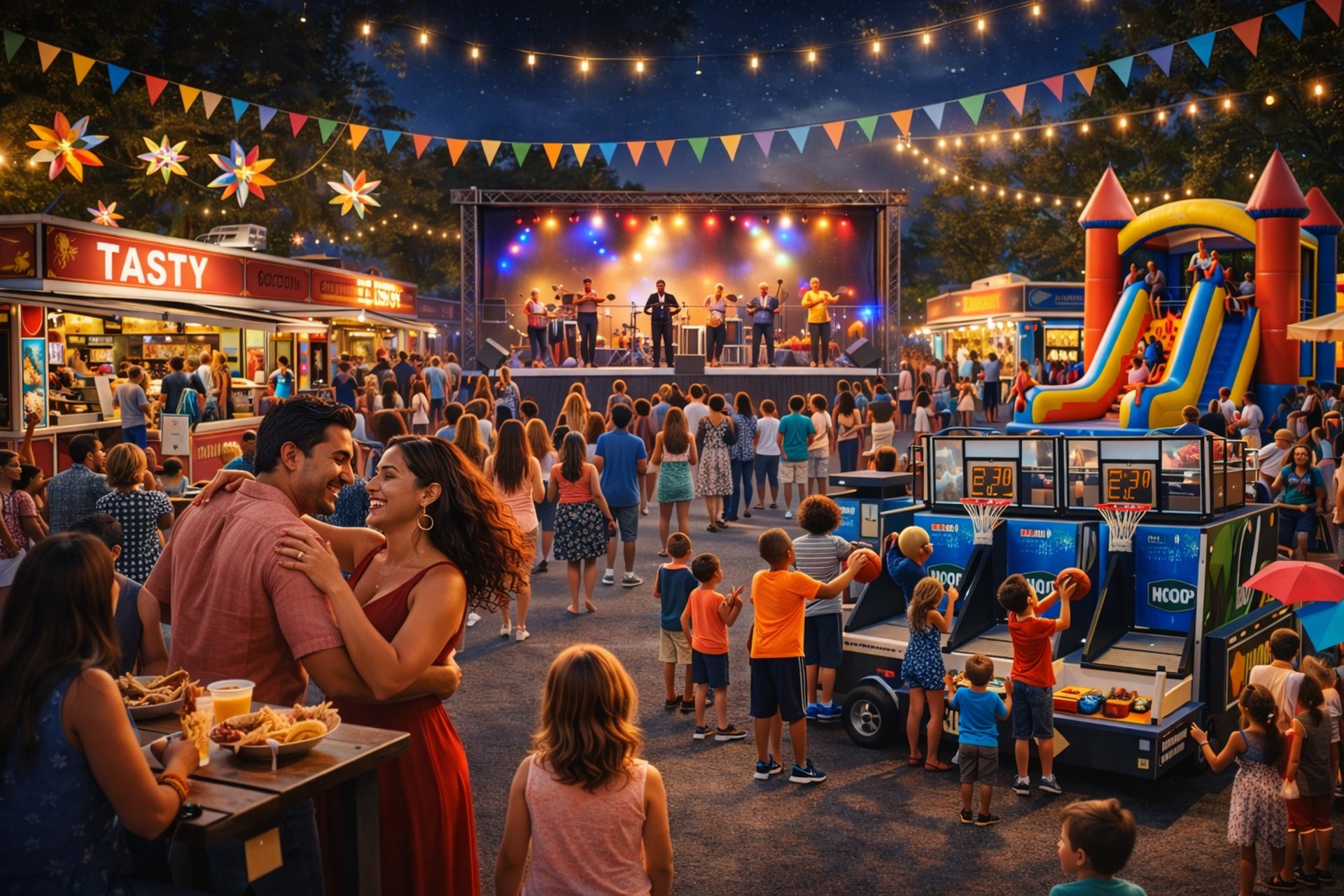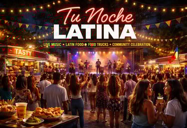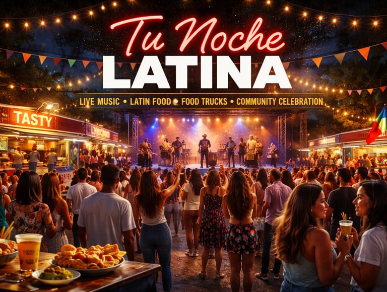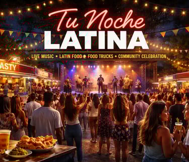 Tu Noche Latina is a vibrant Latin Night Market with live music,Food Trucks, local Vendors, And a festive community atmosphere.