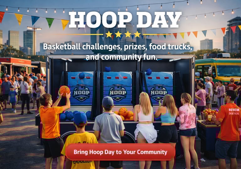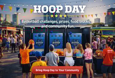 Hoop Day is a fun basketball event featuring shooting challenges, prizes, Food, Trucks and Entertainment for the whole community.