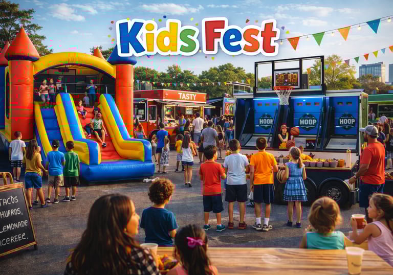 kids Fest is a family event with bouncy castles games, basketball challenges, Food trucks and fun activities for the kids of all ages.
